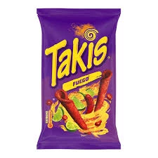 Takis Fuego (Extreme) 18x100g – Carton with 18 bags of fiery rolled tortilla chips (100g each). Intense chili & lime flavor with extreme heat. For true spice lovers. Store in a cool, dry place.
